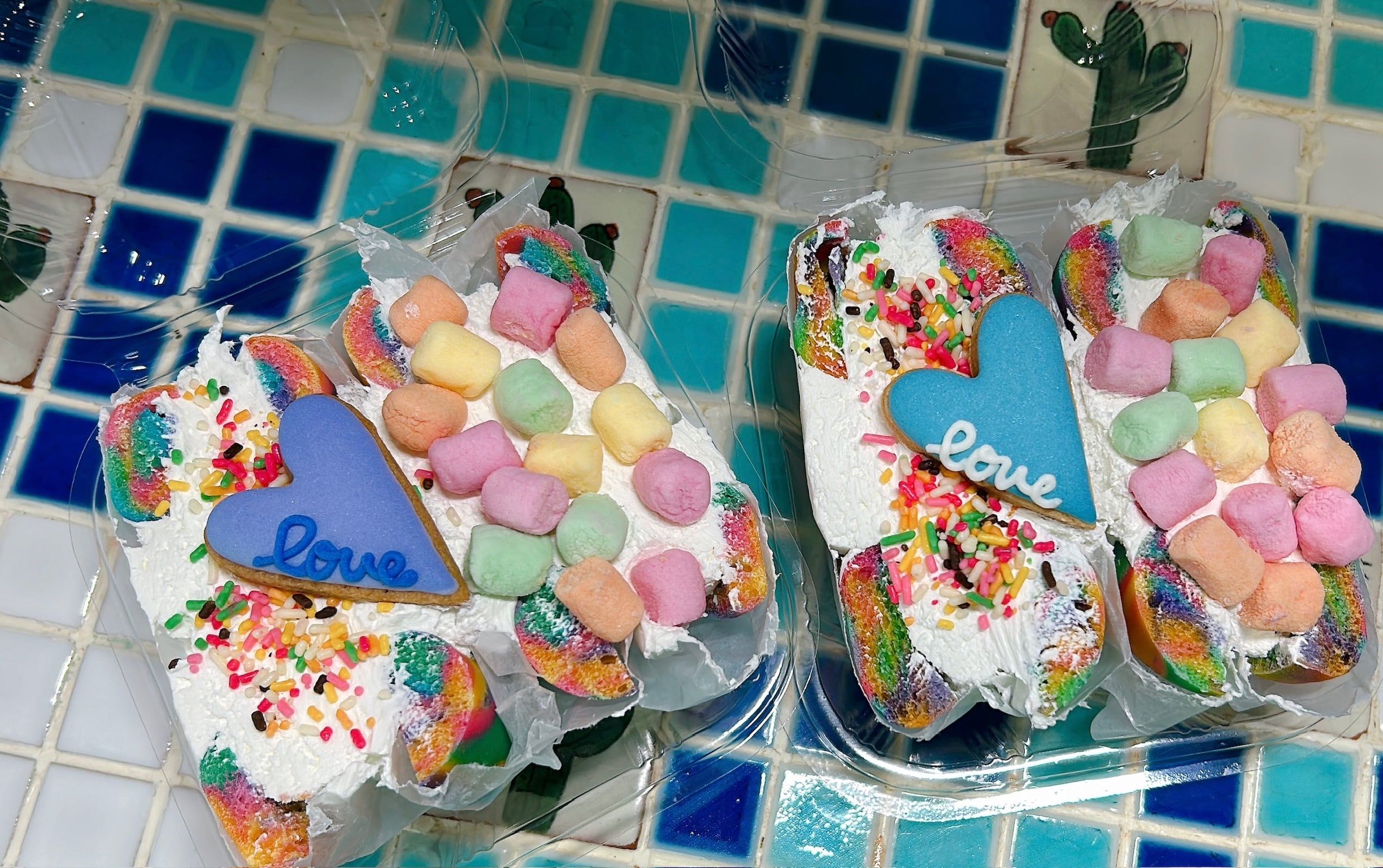 目を引くカラフルな美味しさ、レインボーベーグル2個セットで楽しむ特別な瞬間